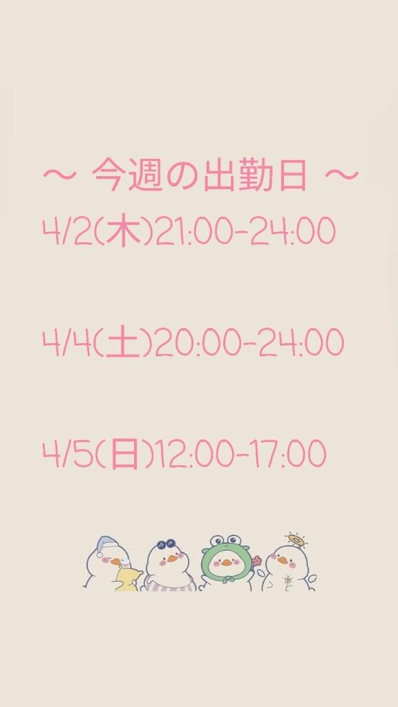 | 4月4日(土) | 21:30 ~ 23:30 |